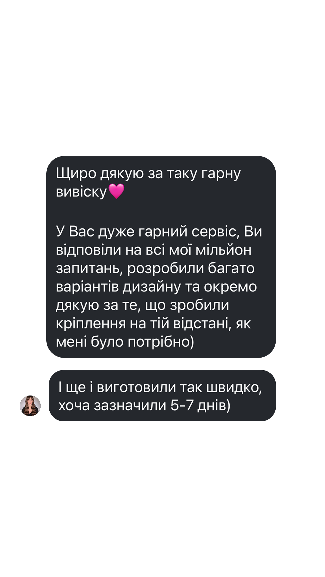 Наші вивіски виготовляються з використанням передових технологій та матеріалів, що гарантує їх довговічність та яскравість світіння протягом багатьох років.